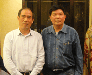 時任河南省人民政府省長郭庚茂先生(左)與臺州商會支部書記、《百花散》傳人梅安富先生合影